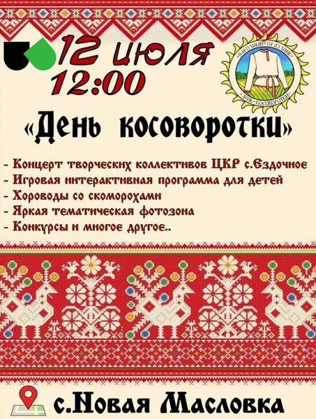 Дорогие друзья, приглашаем вас отпраздновать День косоворотки в с. Новая Масловка! Приходите всей семьёй, чтобы окунуться в атмосферу старинного праздника и узнать больше о русских традициях!